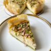 طعمی فراموش نشدنی از ترکیبِ پسته و توت فرنگی در بسترِ بافتِ نرمِ چیزکیک