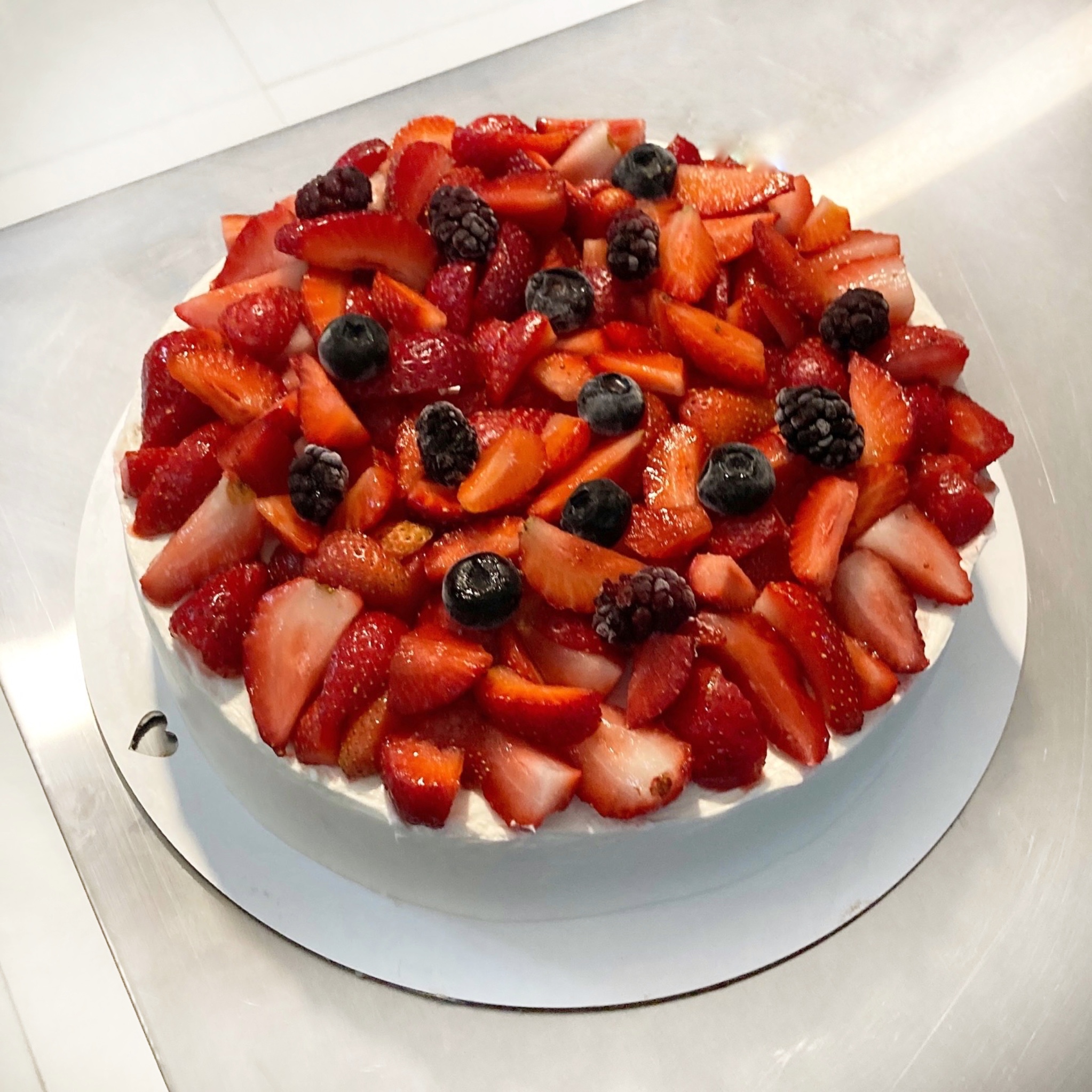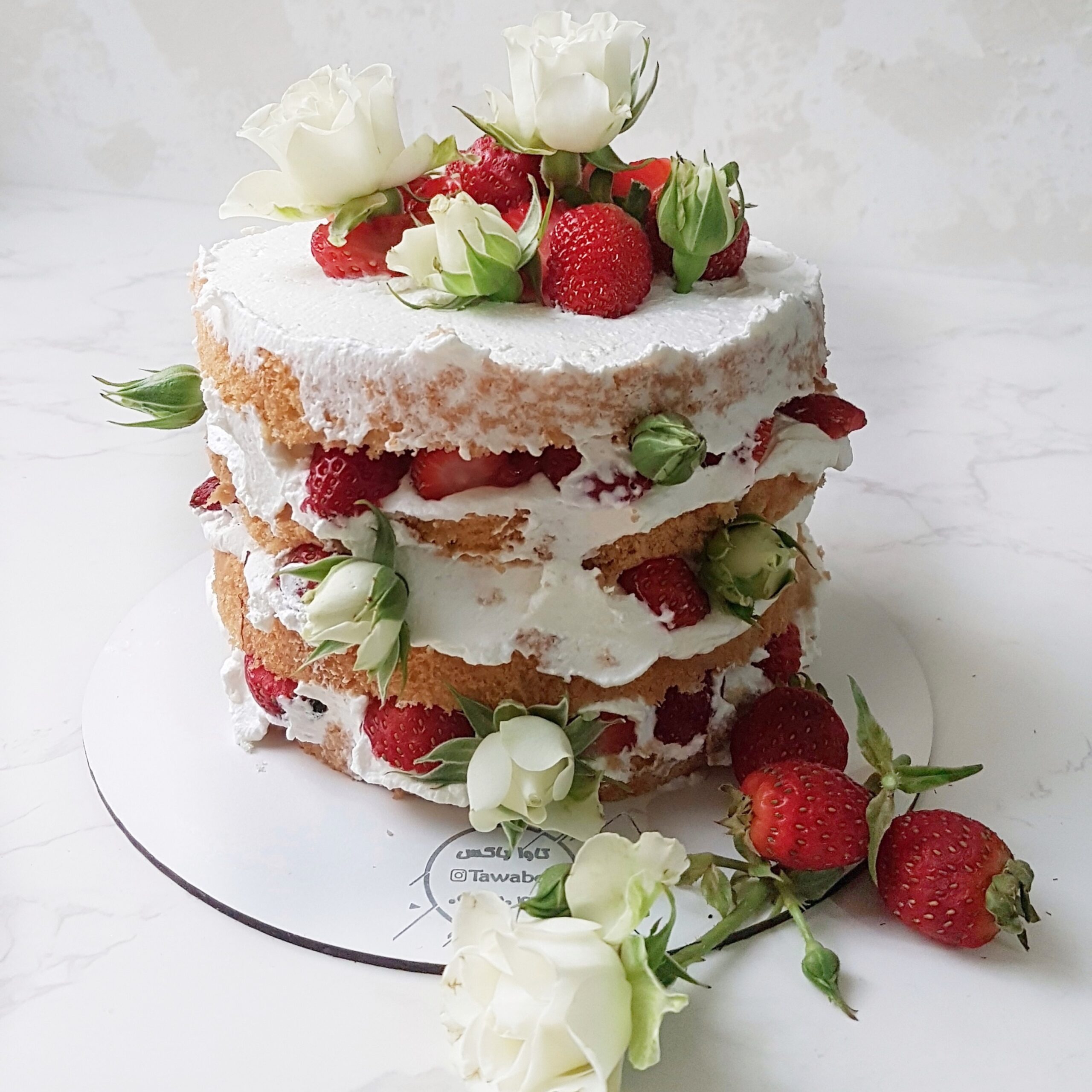 اسفنج وانیلی همراه با خامه قنادی |کُنفی توت فرنگی دستساز و تکه های توت فرنگی تازه | دکور توت فرنگی و انواع بری ها
